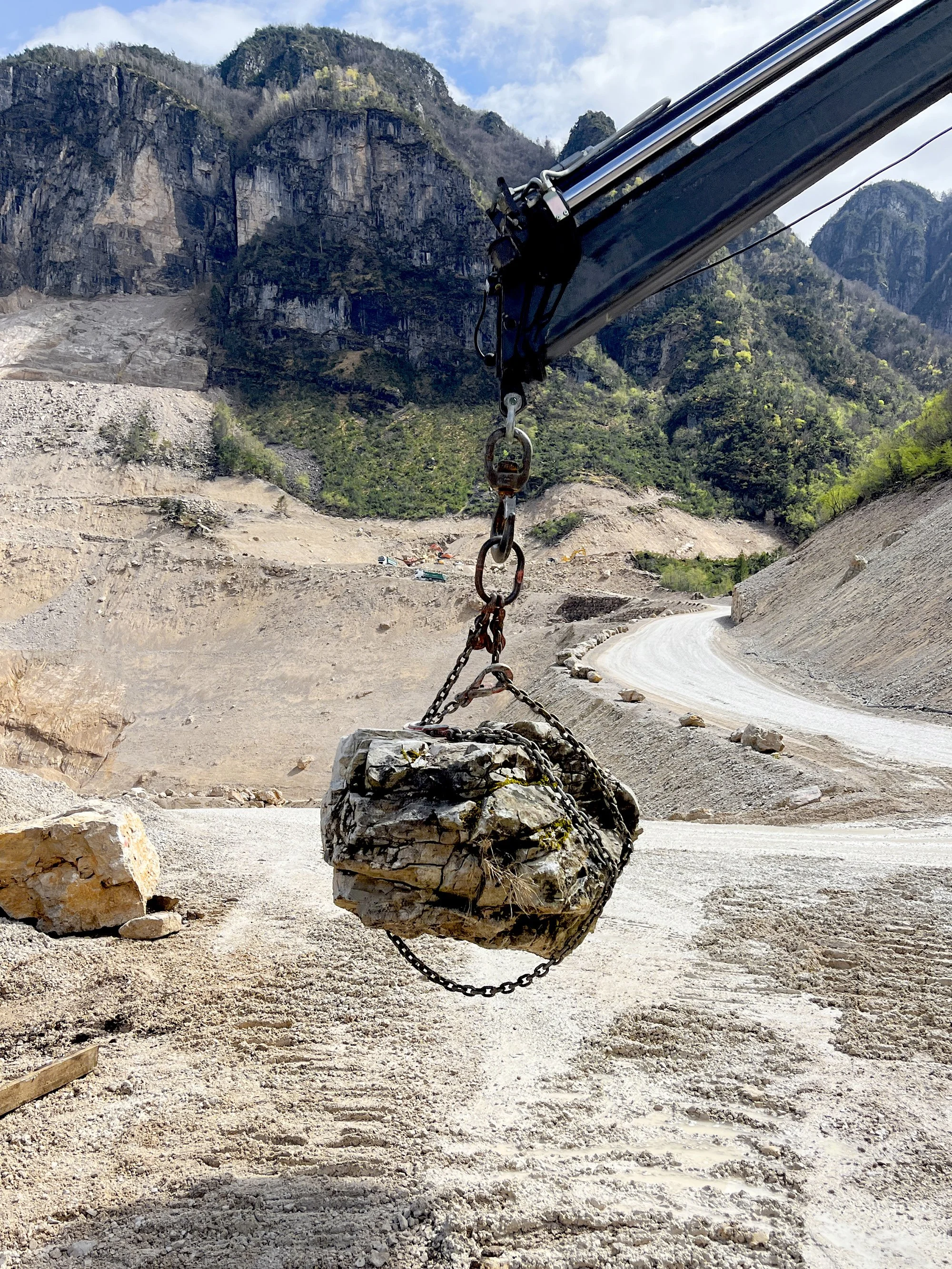 Aridly Abundant transforms the pavilion into an environment that exhibits the ongoing spatial, material, and tactile qualities of aridly abundant landscapes. A series of stone assemblies are inserted into the space, acting as devices that exhibit the multitude of tactics of assembly that have been identified in Al Hajar such as dry-stacking, tethering, and blurring. Audio/visual vignettes by commissioned artist Reem Falaknaz allow one to experience the environment of Al Hajar. The drawing acts as the device that highlights the relationship between the stone assemblies in the exhibition space with Falaknaz’s audio/visual vignettes. In order to demonstrate that the tactics found in the UAE can be translated and employed in other contexts, the assembly methods have been applied to discarded stone fragments from quarries within the Veneto region. Infused with technologies such as 3D scanning and 3D printing that facilitate design and assembly, the stone devices suggest contemporary and alternative building systems that are rooted in their cultural and material environments.